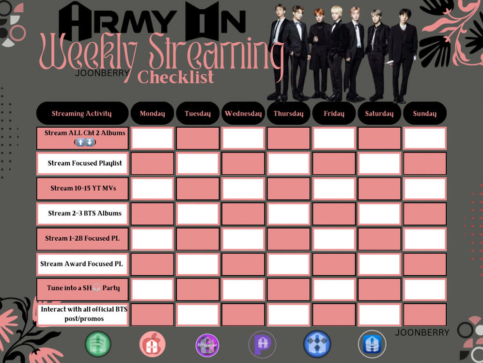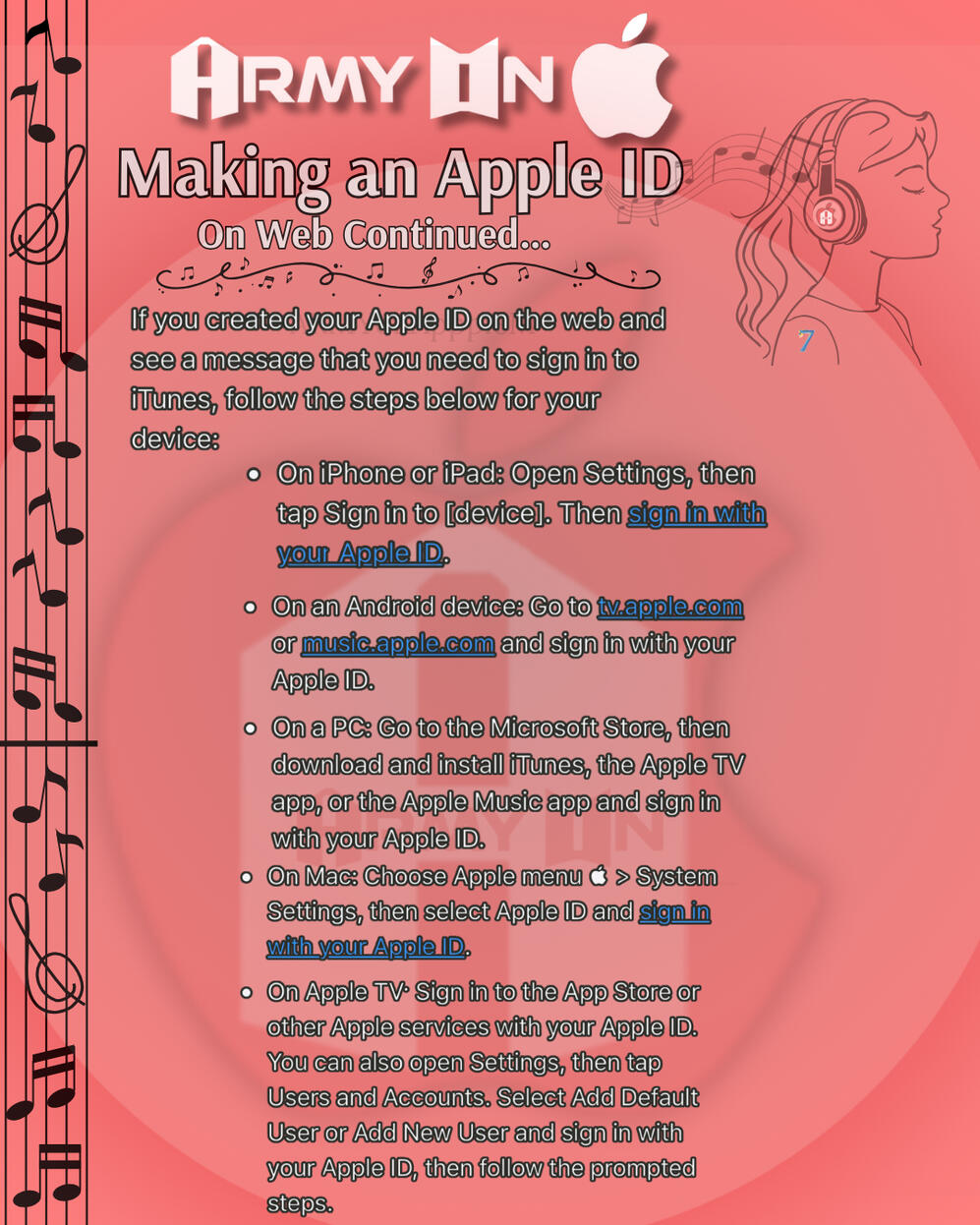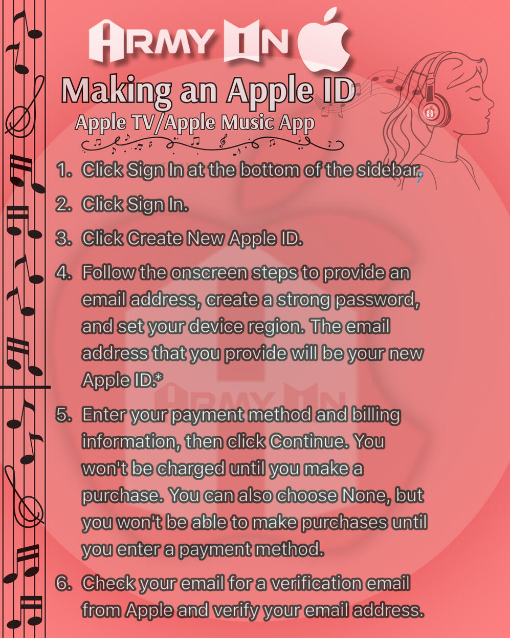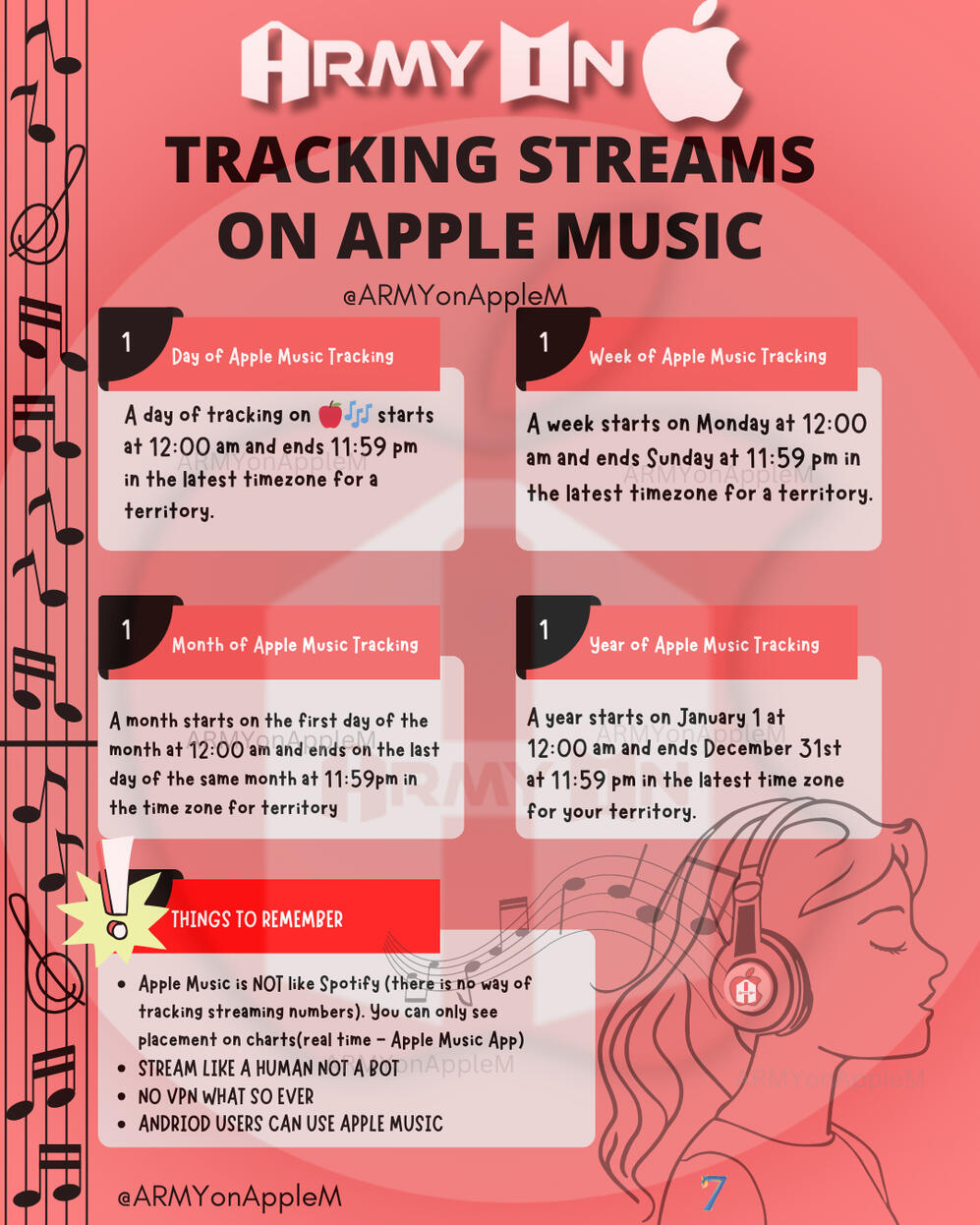 Hello, we are #ARMYonAppleMusic. This fanbase is a part of ARMYON Brand. As an Apple Music Fanbase, we provide playlists, and guidance to help stream, and chart data. Our main focus is premium streams for BTS stability and the longevity of their artistry.